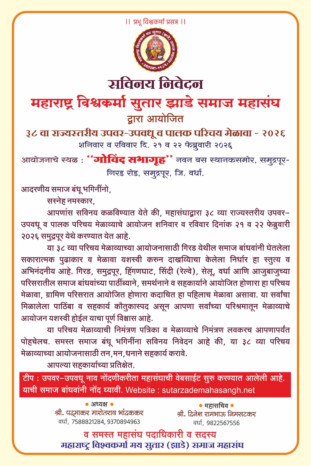 आपल्या समाजातील शैक्षणिक व विश्वसनीय वधू-वरांसाठी सुरक्षित, पारदर्शक आणि आधुनिक मॅट्रिमोनी सेवा. कुटुंबासह योग्य जोडीदार शोधण्यासाठी सोपी व विश्वासार्ह पद्धत.